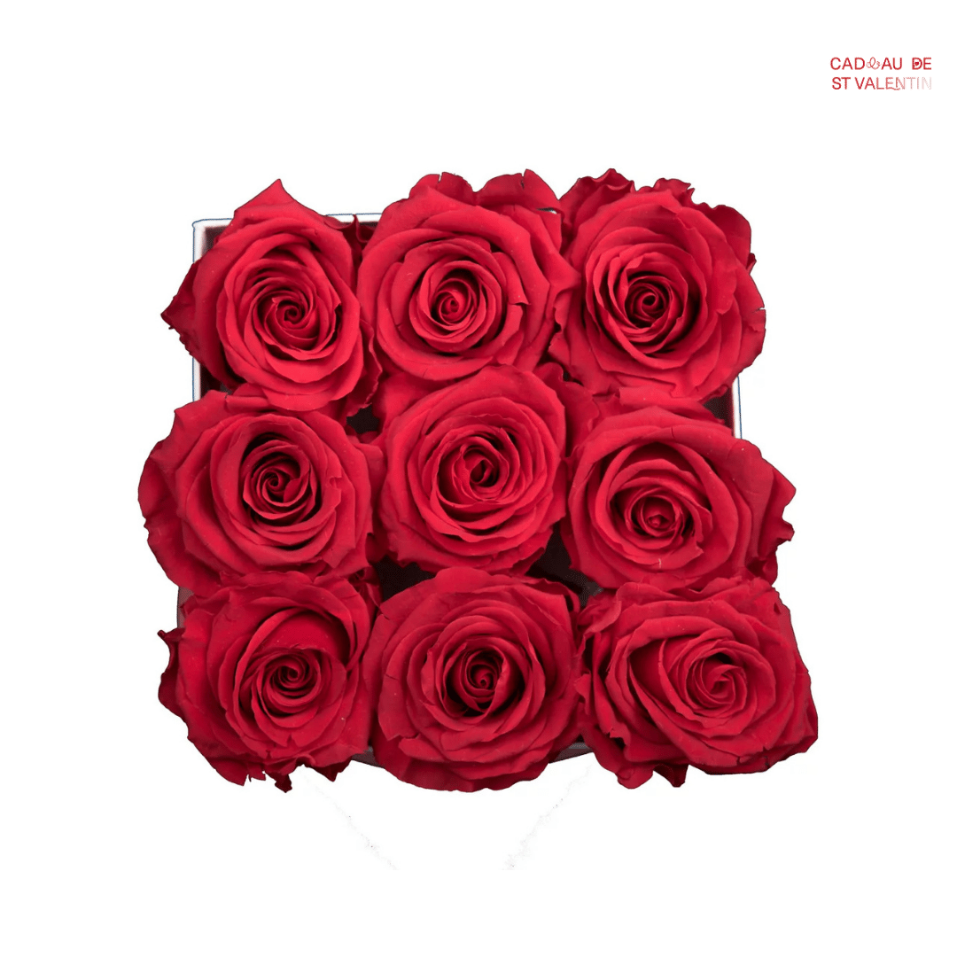 Coffret de 9 roses éternelles Premium - Rouge Passion