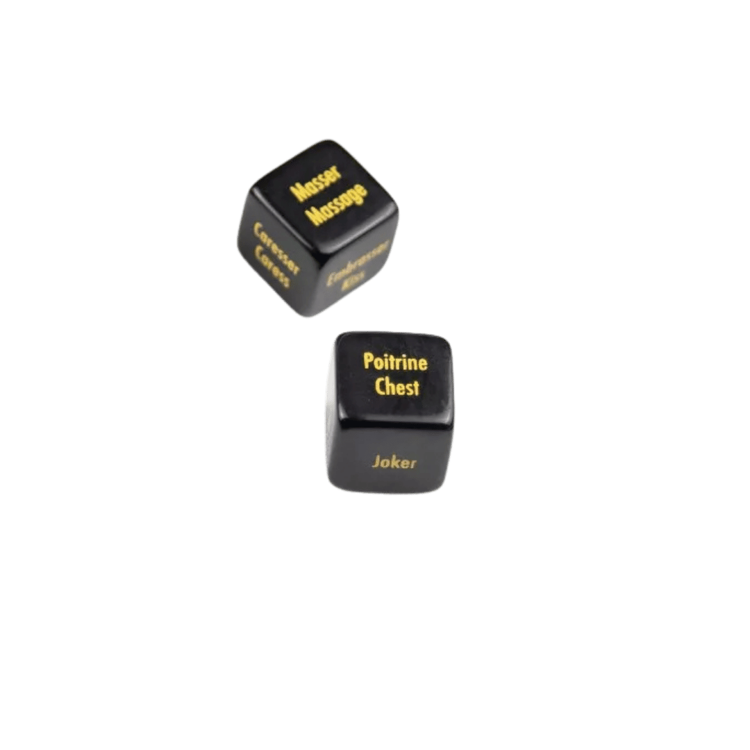 La règle est simple : lancez les deux dés simultanément et réalisez l’action affichée. Une manière ludique et désinhibante de raviver la flamme, resserrer les liens et lancer une soirée romantique sous le signe de la passion.